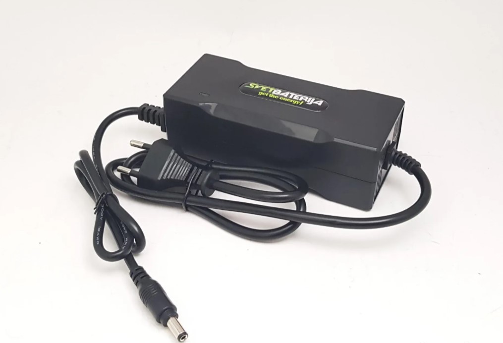 16.8V Brzi Punjač 4S 14.4V Li-Ion Paketa Baterija, zbog struje punjenja 6A odličan za veće kapacitete primer od 18Ah do 60Ah. Indikacija na punjaču, sija LED diodica crveno kada puni a kada je napunjeno zeleno, ukoliko ste spojili punjač sa baterijom i sija zeleno odmah u startu može biti da je baterija puna ili prazna ispod donjeg praga što je 12V u tom slučaju punjač ne prepoznaje paket baterija i ne započinje punjenje. Integrisana zaštita od prepunjavanja drugim rečima puni sa CC/CV krivom, zaštita od kratkog spoja i pregrevanja (aktivni kuler za hlađenje komponenti).
