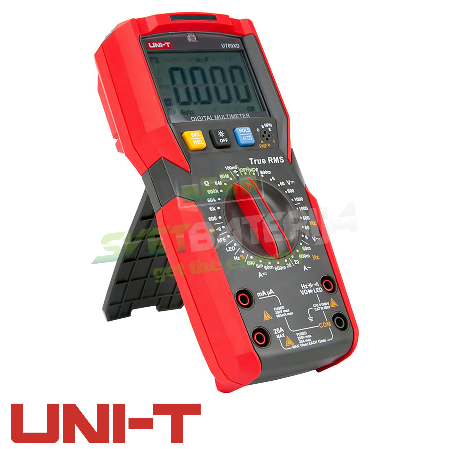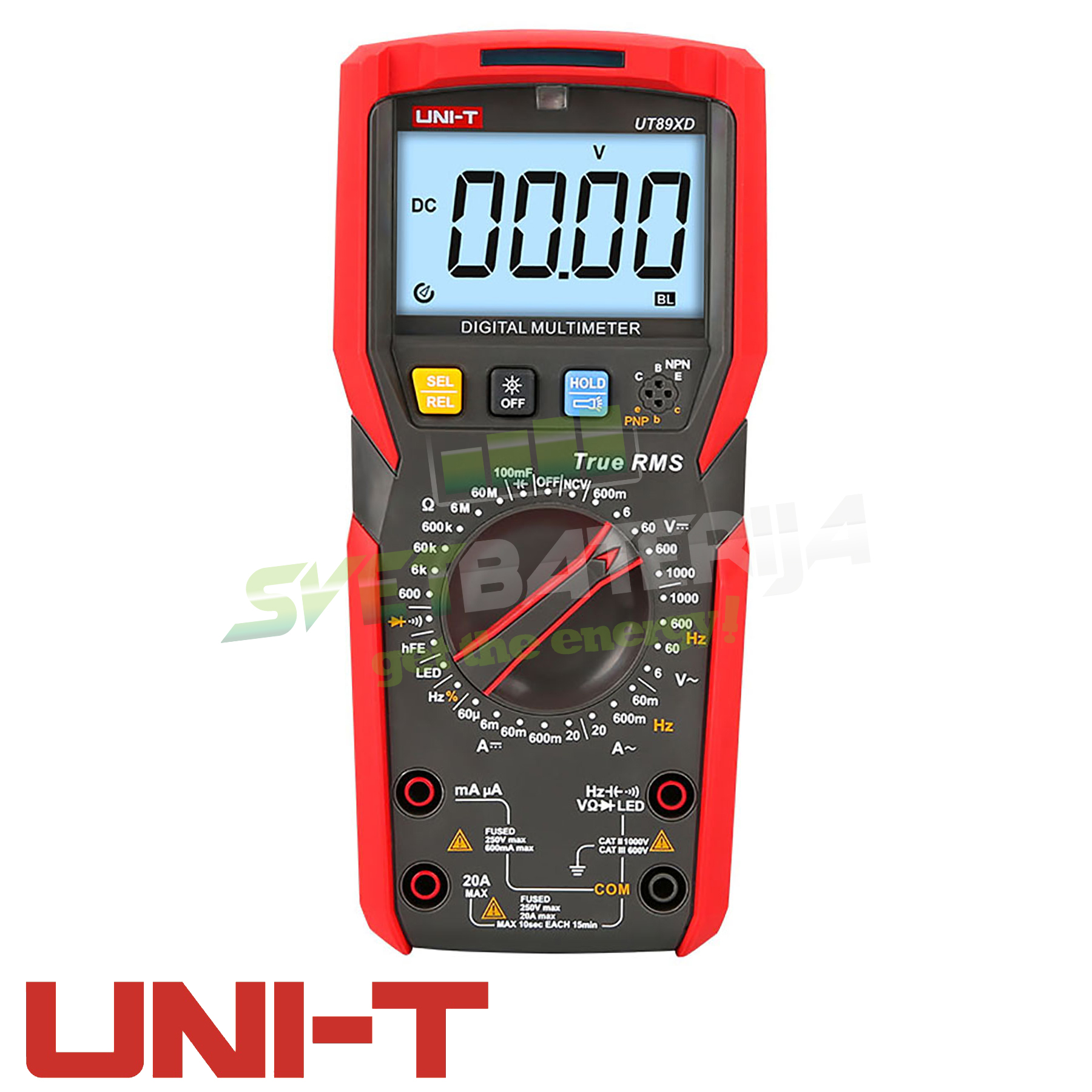 UNI-T UT89XD je multifunkcionalan digitalni unimer na koji se možete bez razmišnjanja svakodnevno osloniti na precizno merenje i analizu. Sposoban je da mer AC/DC napon do 1000V i maks. AC/DC struju do 20A, naravno ima mogućnost merenja farada, frekvencije, test diode, test hFE transistora, NCV beskontaktna detekcija napona u instalacijama, LED lampa, zujalica i True RMS podrška. Ogromna prednost je opcija testiranja 12V LED dioda, led trake itd, što je savršen DMM za TV mehaničare i električare na bilbordima, LED reklamama a naravno i za radionice, laboratorije, studente elektrotehnike i elektrotehničare!