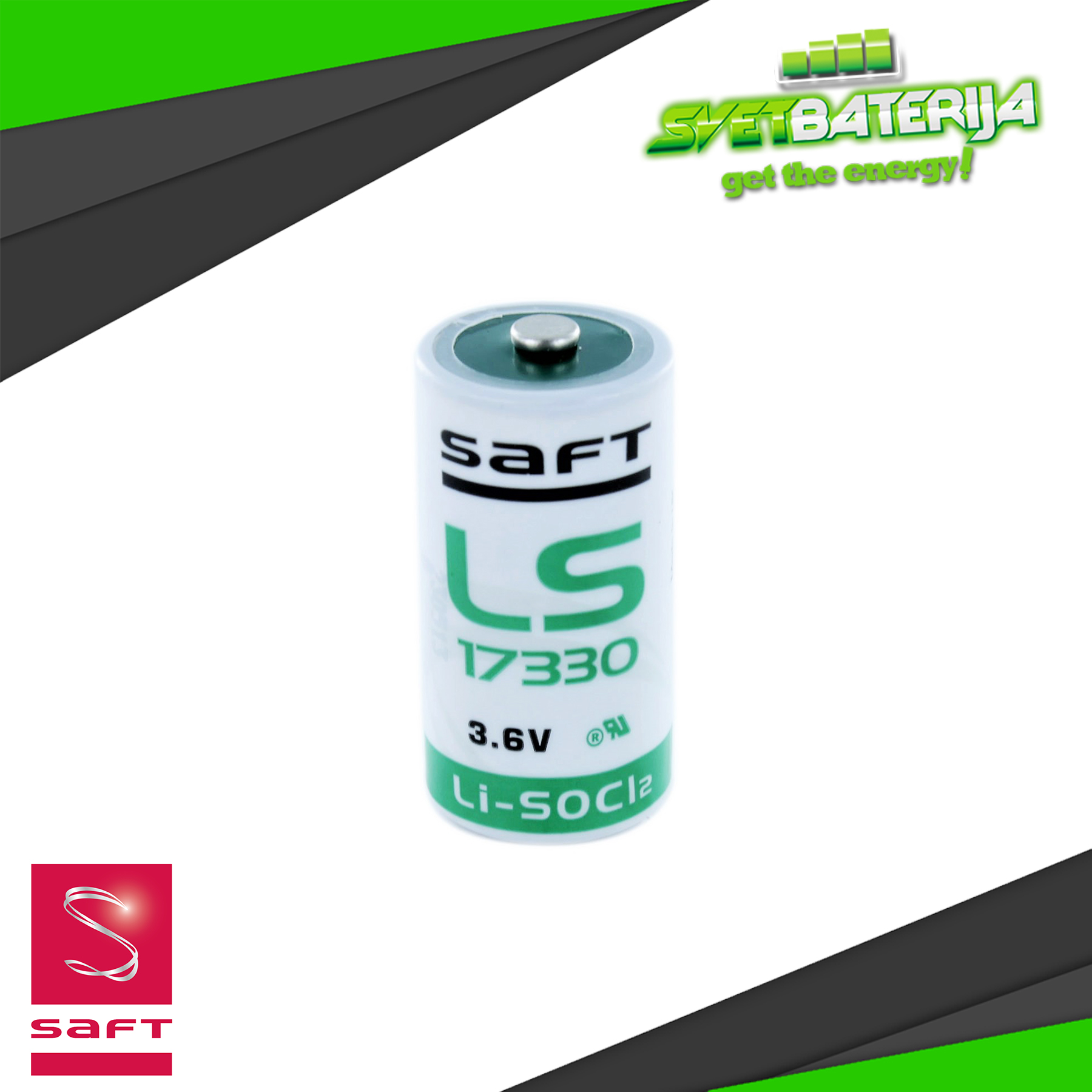 Koristi se kao napajanje memorije Back-up sistema, PLC, mernih uređaja, sigurnosnih sistema, senzora i druge profesionalne elektronike i kao takva ćelija u svetu ne postoji pouzdanija od Saft LS17330 Litijumske ćelije. Ova baterija ima neverovatno stabilnu i dugotrajnu Litijum hemiju, kao i jedinstven napon od 3.6V za pouzdan izvor energije što je čini savršenom za specifičnu osetljivu elektroniku. Ova Saft LS17330 baterija ima kapacitet od 2100mAh što srazmerno povećava njen radni vek posebno kod uređaja koji rade na niskoj impulsnoj struji. Veličina ćelije je 2/3A ili 17330 tj. 17mm prečnik i 33mm dužina i napravljena je da odgovara u unutrašnjosti kompaktne elektronike kojoj treba visok napon za brojila, čuvanje memorije i raznih mernih satova.