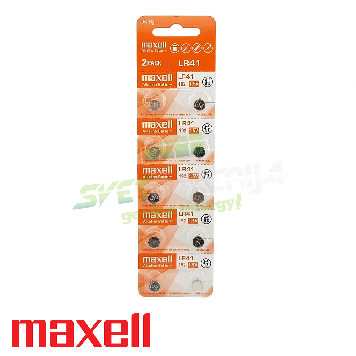 Alkalna Baterija LR41 AG3 1.5V MAXELL specijalna alkalna baterija dugog životnog veka, širokog raspona radne temperature, otporna na curenje. Upotreba u uređajima za svakodnevno korišćenje, kao što su: digitron, vaga, sat, daljinski upravljač, itd.