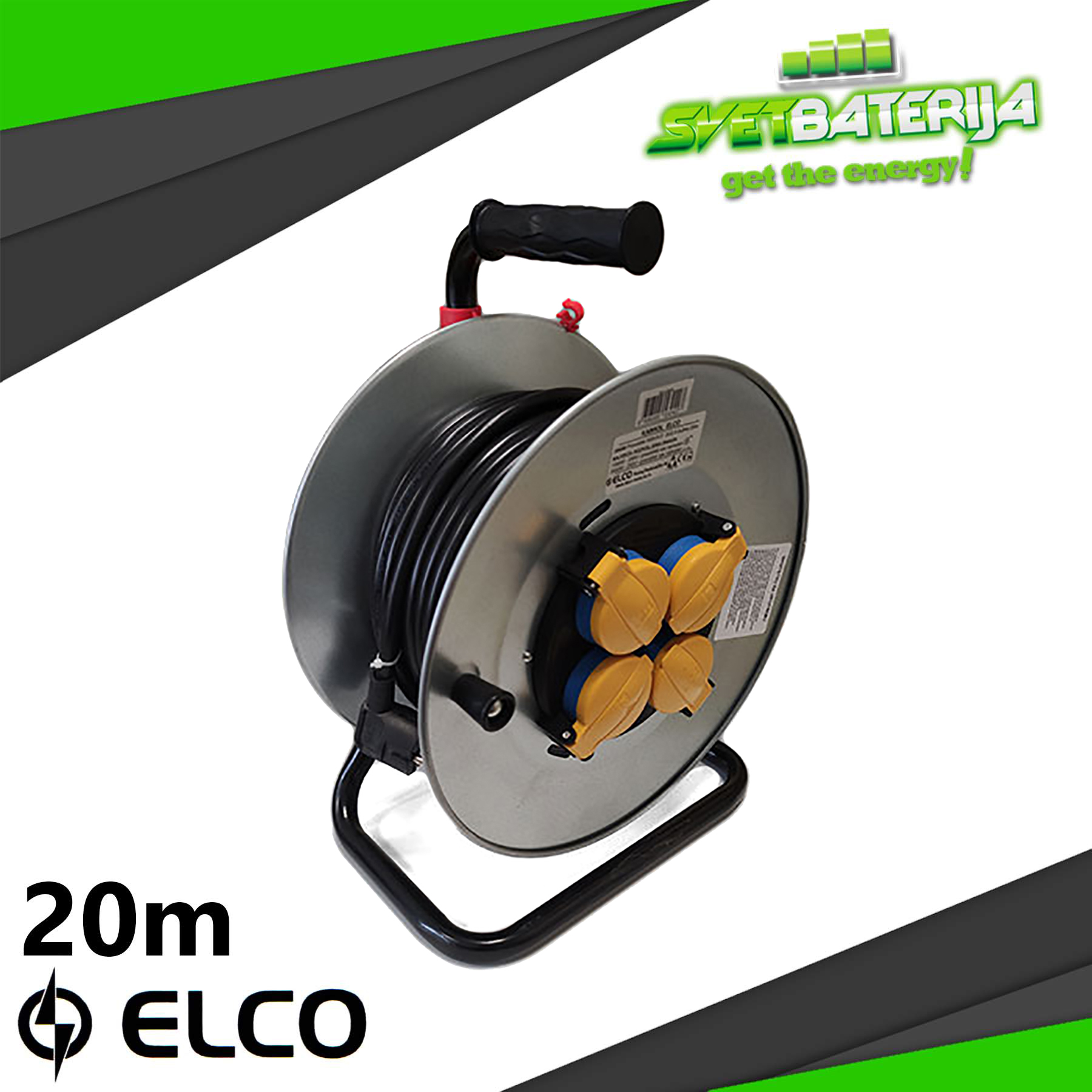 Profesionalna motalica sa fleksibilnim kablom sa plastičnim omotačem, sertifikovana od strane ovlašćenih institucija iz Srbije. Kablovi dužine 20m , 25m , 30m , 40m , 50m. Poseduje četiri monofazne priključnice koje poseduju zaštitu od spoljašnih uticaja.