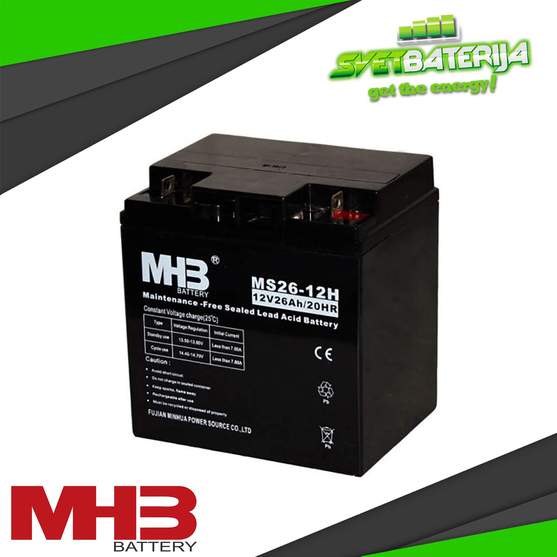 Kompanija MHB Batteries je poreklom iz Kine i bavi se proizvodnjom i prodajom olovnih baterija. Vodeći su proizvođači ćelijskih panela za baterije a njihovi proizvodi obuhvataju AGM i Gel kao i druge tipove duboko cikličnih baterija. MHB baterija 12V 26Ah je specijalna baterija dimenzija 175x166x125 mm, koja za razliku od drugih baterija ovog napona i kapaciteta može da obezbedi veće struje pražnjenja. Višenamenska baterija, idealna za UPS uređaje, aparate za medicinu, signalizirajuća svetla, alarm sisteme za obezbeđenje, sisteme za telekomunikaciju, električne alate, igračke i druge uređaje gde je potrebna suva baterija sličnih dimenzija ili karakteristika.