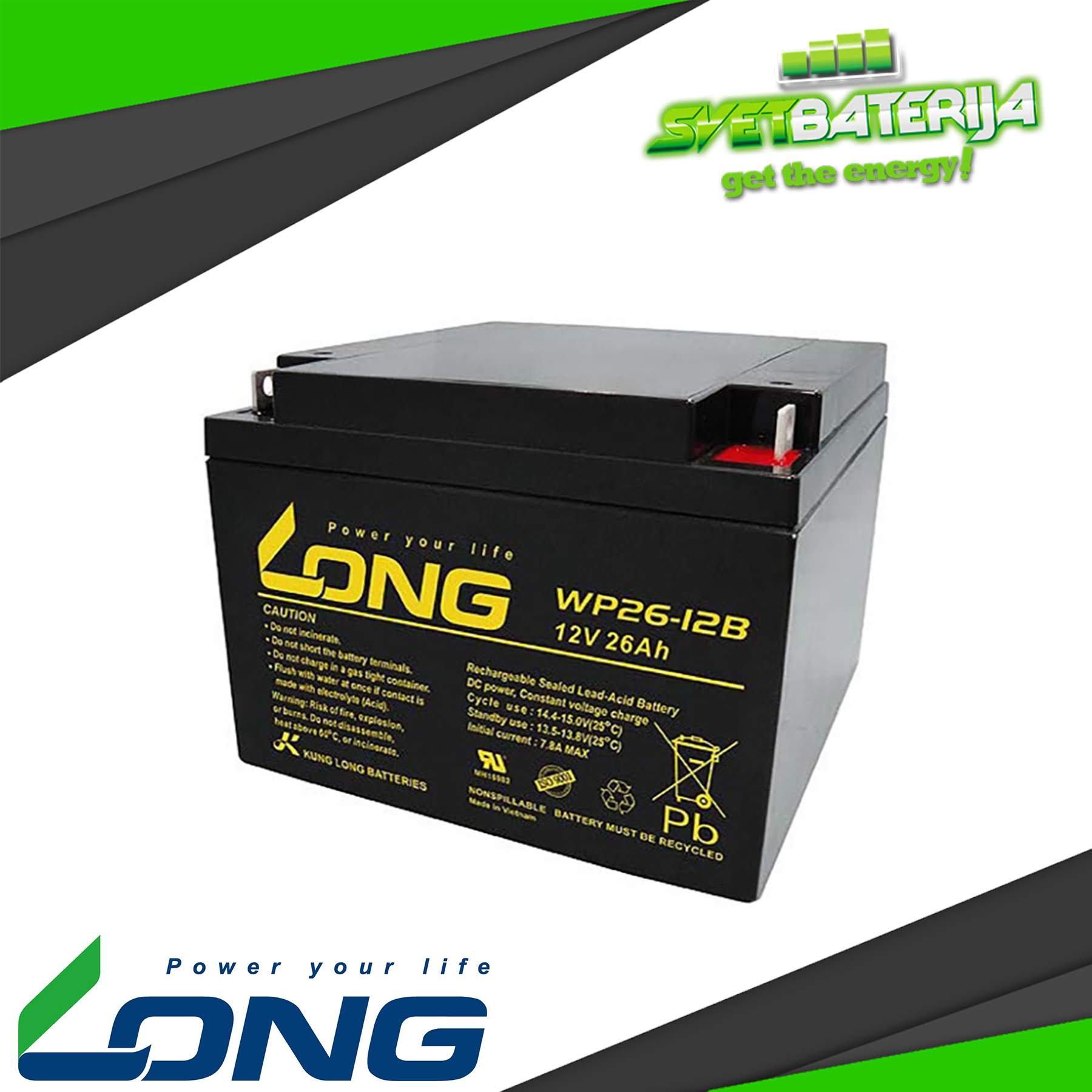 Kompanija Kung Long Batteries se bavi proizvodnjom i prodajom olovnih baterija na Tajvanu. Njihovi proizvodi obuhvataju AGM i Gel baterije, kao i druge tipove duboko cikličnih baterija. Long baterija 12V 26Ah pod oznakom WP26-12B je specialna baterija dimenzija 166x177x125 mm, koja za razliku od drugih baterija ovog napona i kapaciteta može da obezbedi veće struje pražnjenja. Idelna za UPS uredjaje. Ova baterija obezbeđuje i dug životni vek u uređajima kao što su sonarni aparati, reflektori, kosačice, lampe, čobanice (pastirice) i druge uređaje gde se traži suva baterija sličnih dimenzija ili karakteristika. Ne preporučuje se za električne bicikle niti invalidska kolica.