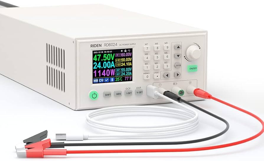 Riden RD6024 je programabilni DC napajanje visokih performansi, sa maksimalnim izlaznim naponom od 60V i strujom do 24A, što ga čini idealnim za različite laboratorijske, servisne i industrijske primene. Ovaj uređaj omogućava precizno podešavanje izlaznog napona i struje, sa visokom stabilnošću i niskim šumom. Integrisan LCD ekran prikazuje detaljne parametre, uključujući izlazni napon, struju i snagu u realnom vremenu.