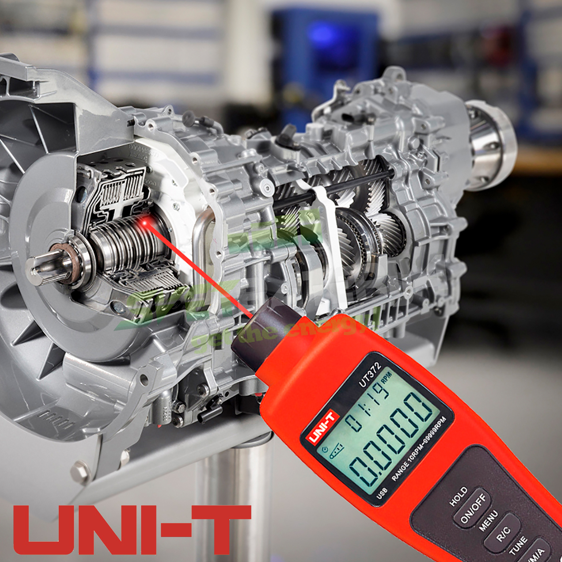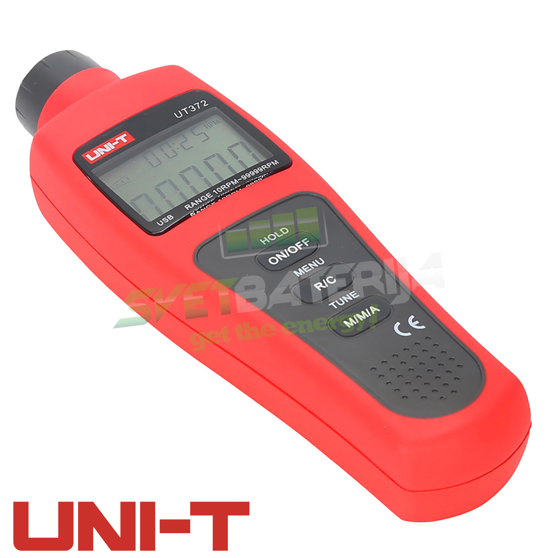 UNI-T UT372 je profesionalni beskontaktni merač za analizu RPM brzine obrtaja na mašinama, motorima, strug za drvo za metal, remenica, zupčanika, osovina, transportne trake itd. Veoma lako merenje broja obrtaja se vrši uz pomoć komadića PVC reflektujuće trake koja se lepi na rotirajući deo koji merimo na primer motor, zatim se uperi sam laser u taj deo i u tren oka dobijamo merne vrednosti. Napominjemo da ukoliko potrošite reflektujuću traku, uvek je možete kupiti u većini štamparija ili prodavnicama Oracal pvc folija!