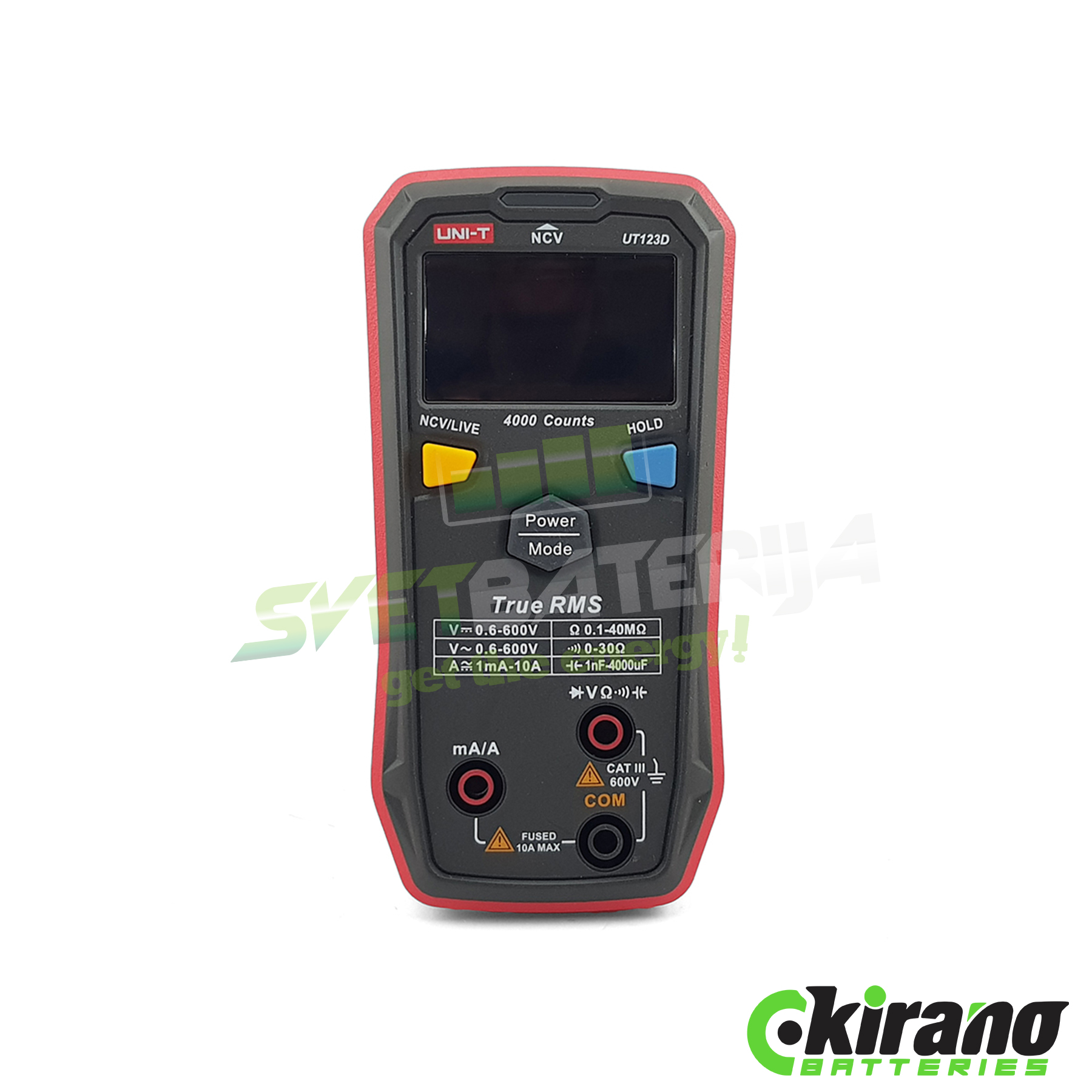 UNI-T UT123D je fenomenalan mini digitalni unimer, namenjen za merenje AC/DC napona do 600V, farada/kapacitivnosti, otpora. NCV beskontaktna detekcija napona, zujalica, data hold, indikacija baterije i automatsko gašenje. Savršen za brzo merenje napona na akumulatoru od auta, dečijeg autića, električnog bicikla, trotineta itd.