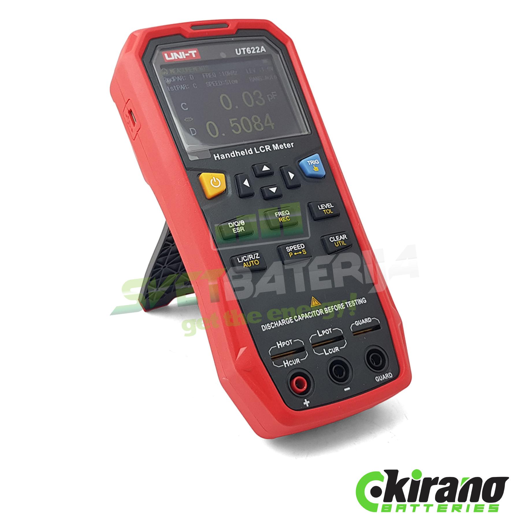 UT622A LCR je profesionalni merni instrument koji se koristi za testiranje indukcije napona, mikrofarada kapacitivnosti, otpornika, induktora i kondezatora. Ističe se po 2.8-inch LCD ekranom velikim i preglednim ekranom, 3.6V LiPo 1800mAh integrisanom baterijom, opcijom napajanja putem Mini-USB kabla, merenjem frekvencije do 10kHz, maksimalan prikaz brojki 99999, ekstremna preciznost do 0.001, 3 brzine testiranje, data logger opcija, PC konekcija i čuvanje mernih vrednosti u JPG, Excel ili PDF dokumentu. Poje za laboratorije, servise i pogone!