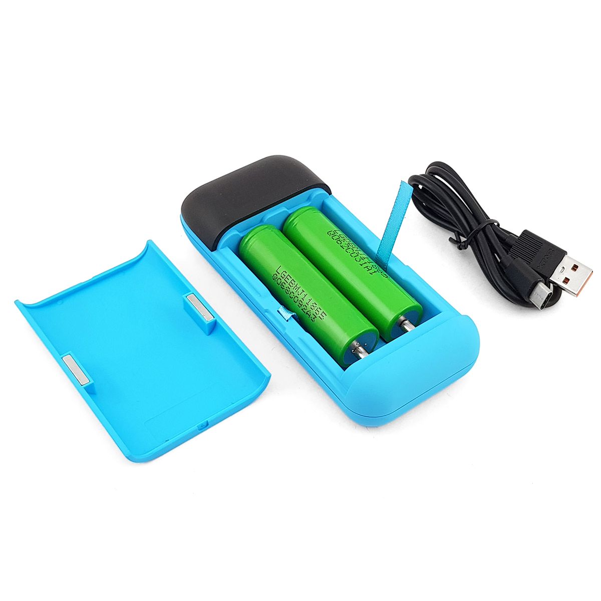 - Može puniti 18650 i 21700 litijum jon punjive baterije